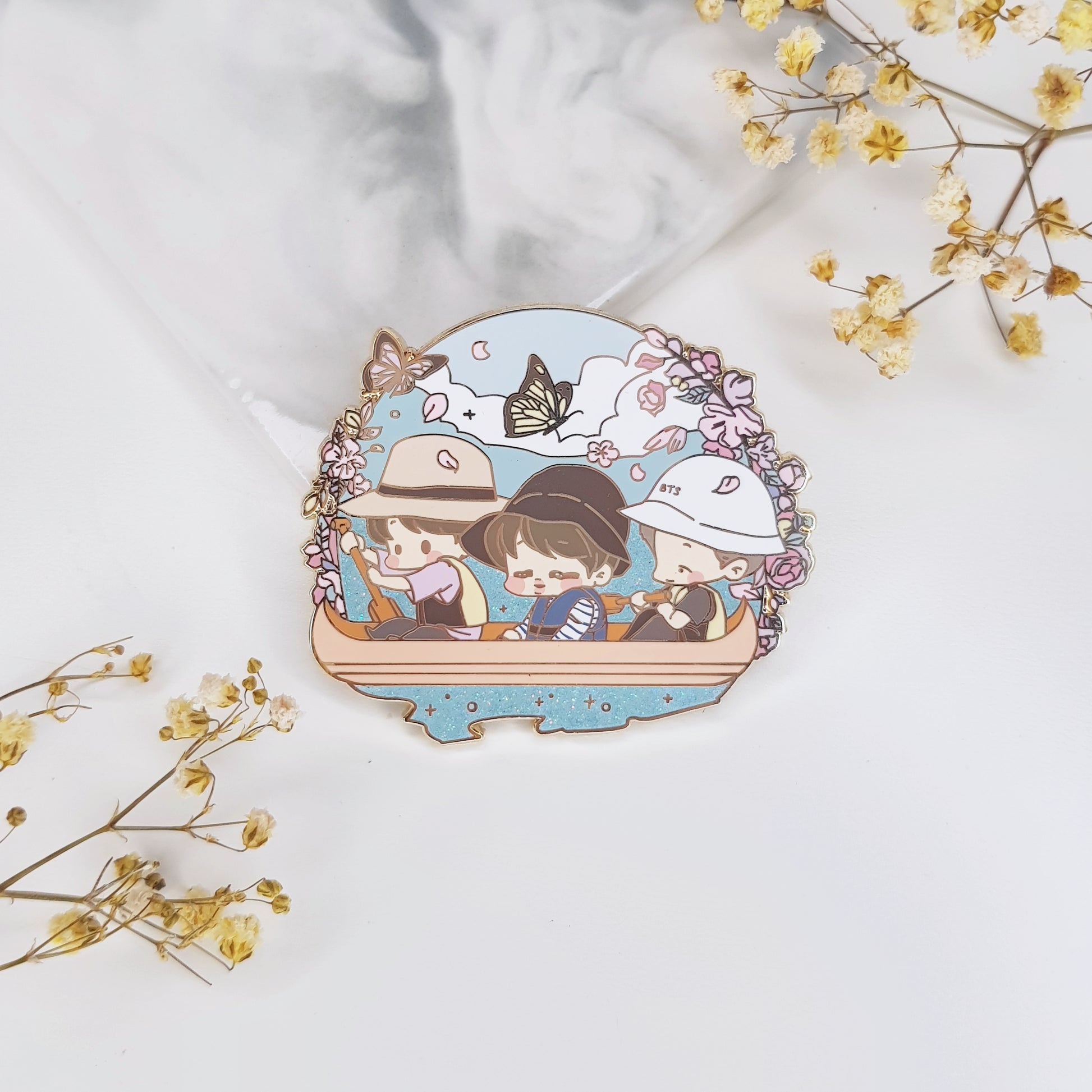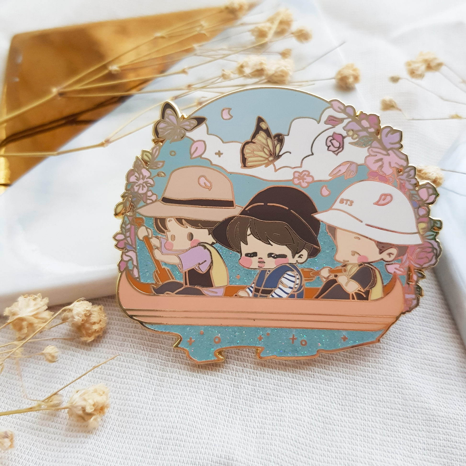 Hard enamel pin with gold finish. About 47mm in height.
