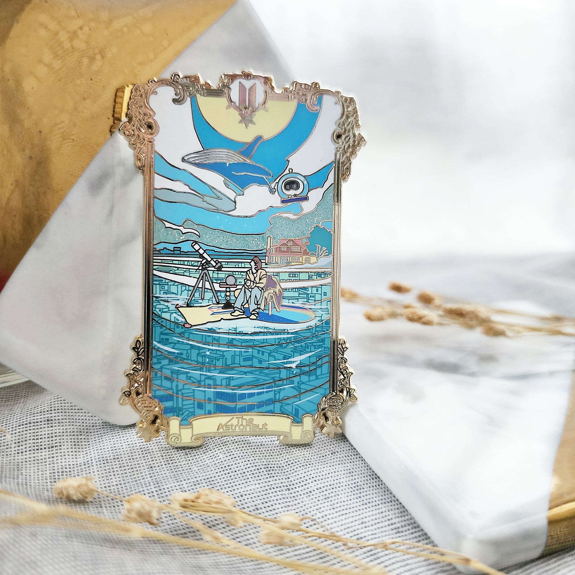 Hard enamel pin with gold finish. About 70mm in height. Instock