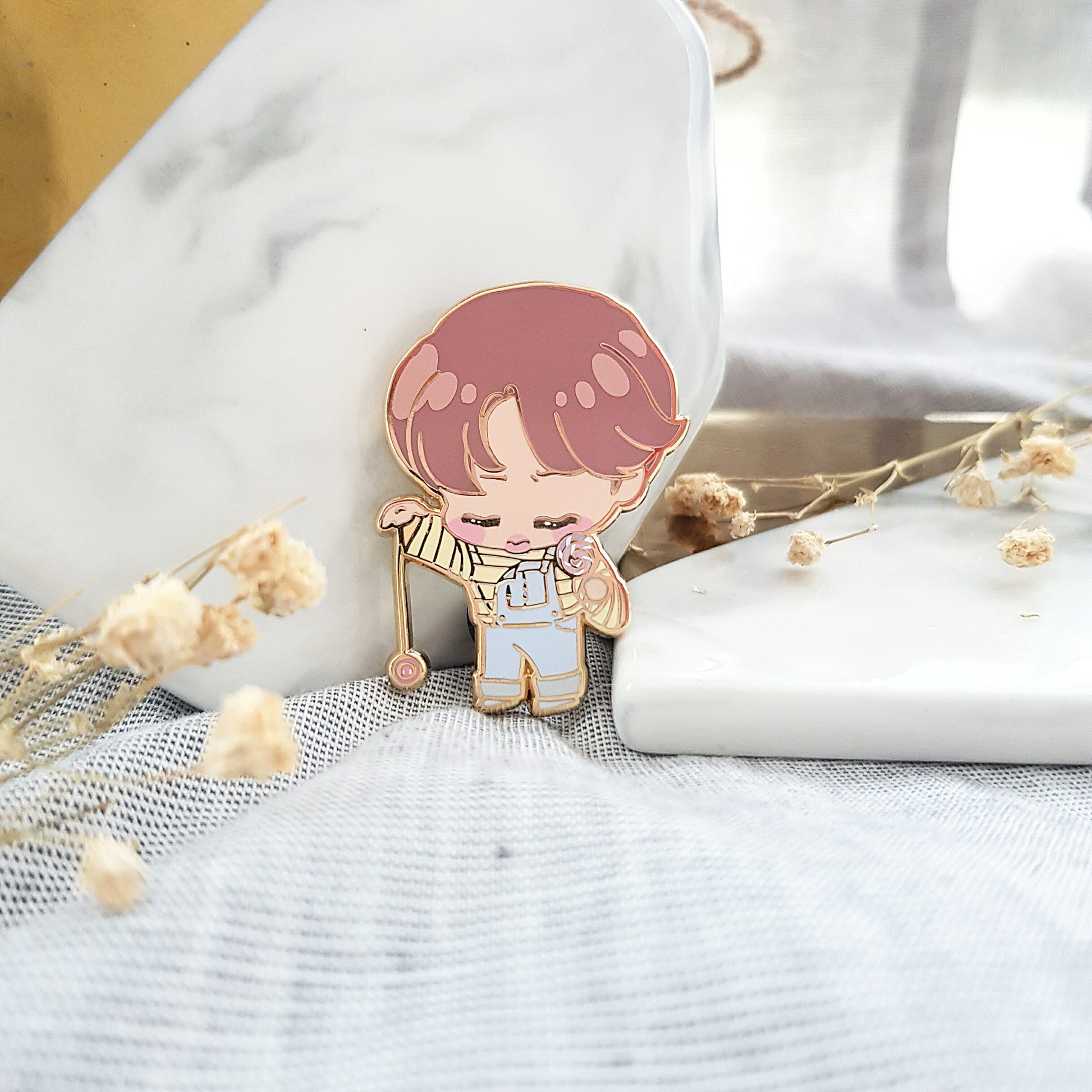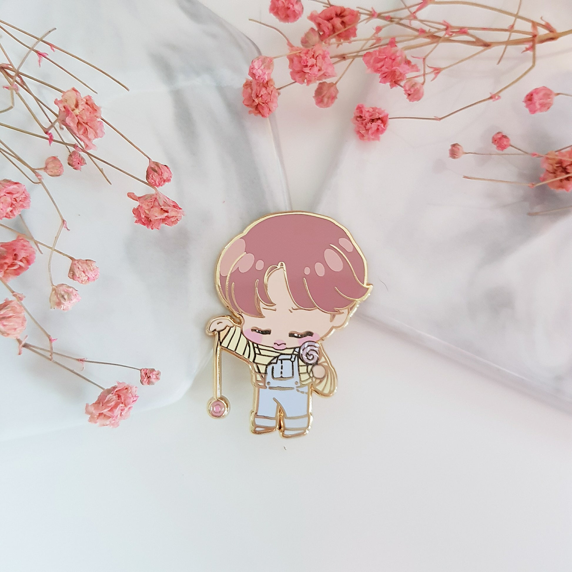 Hard enamel pin with gold finish. 40mm in height.
