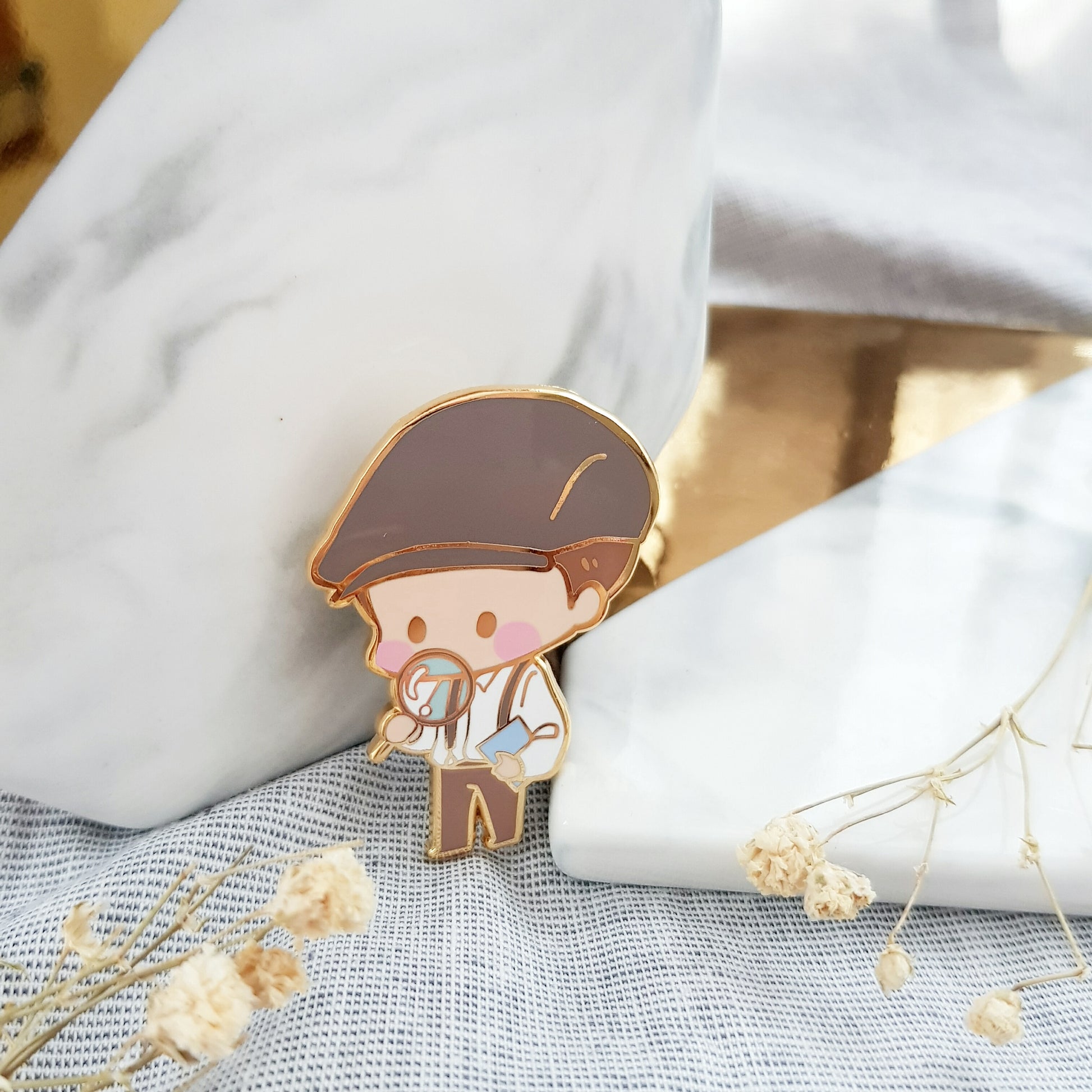 Hard enamel pin with gold finish. 40mm in height.