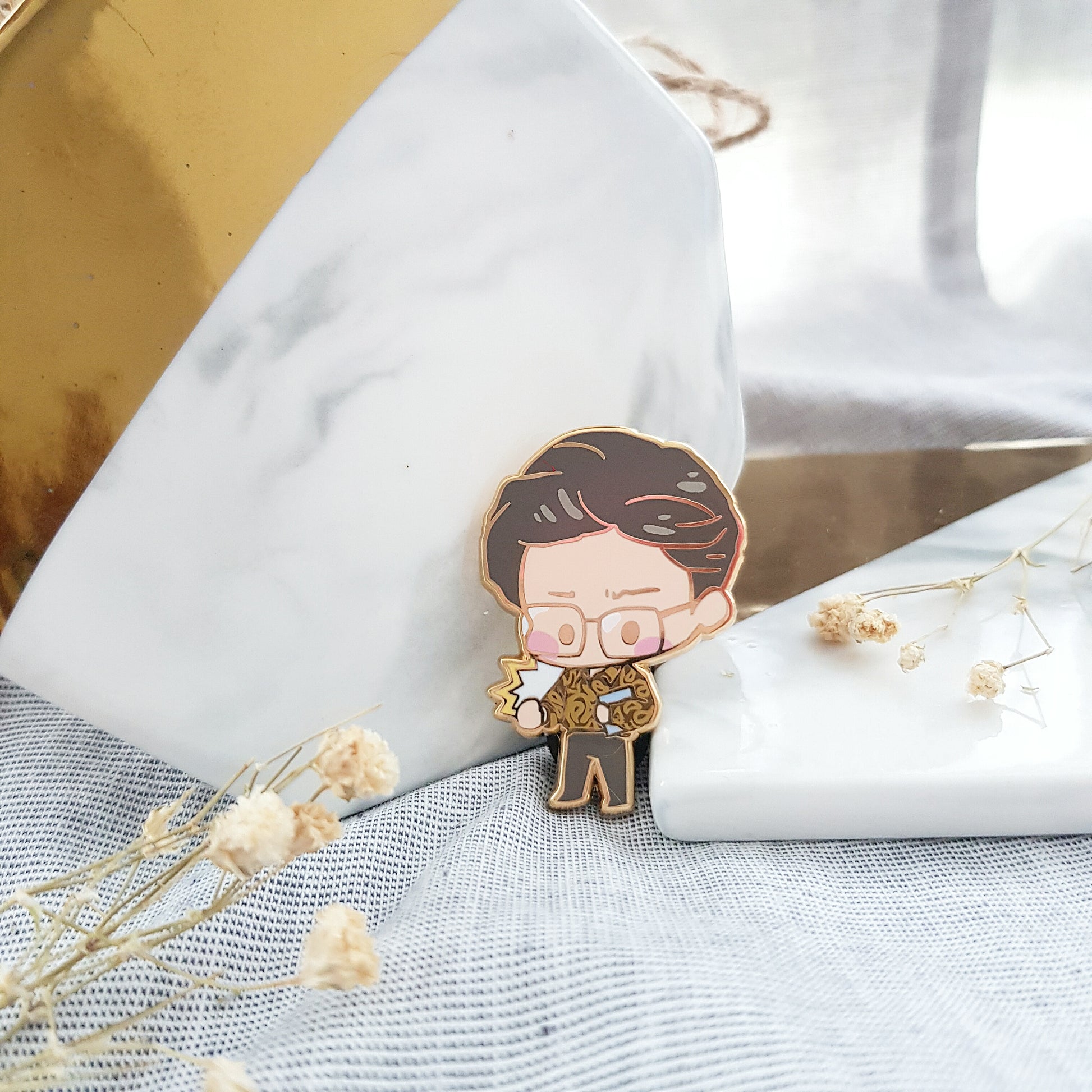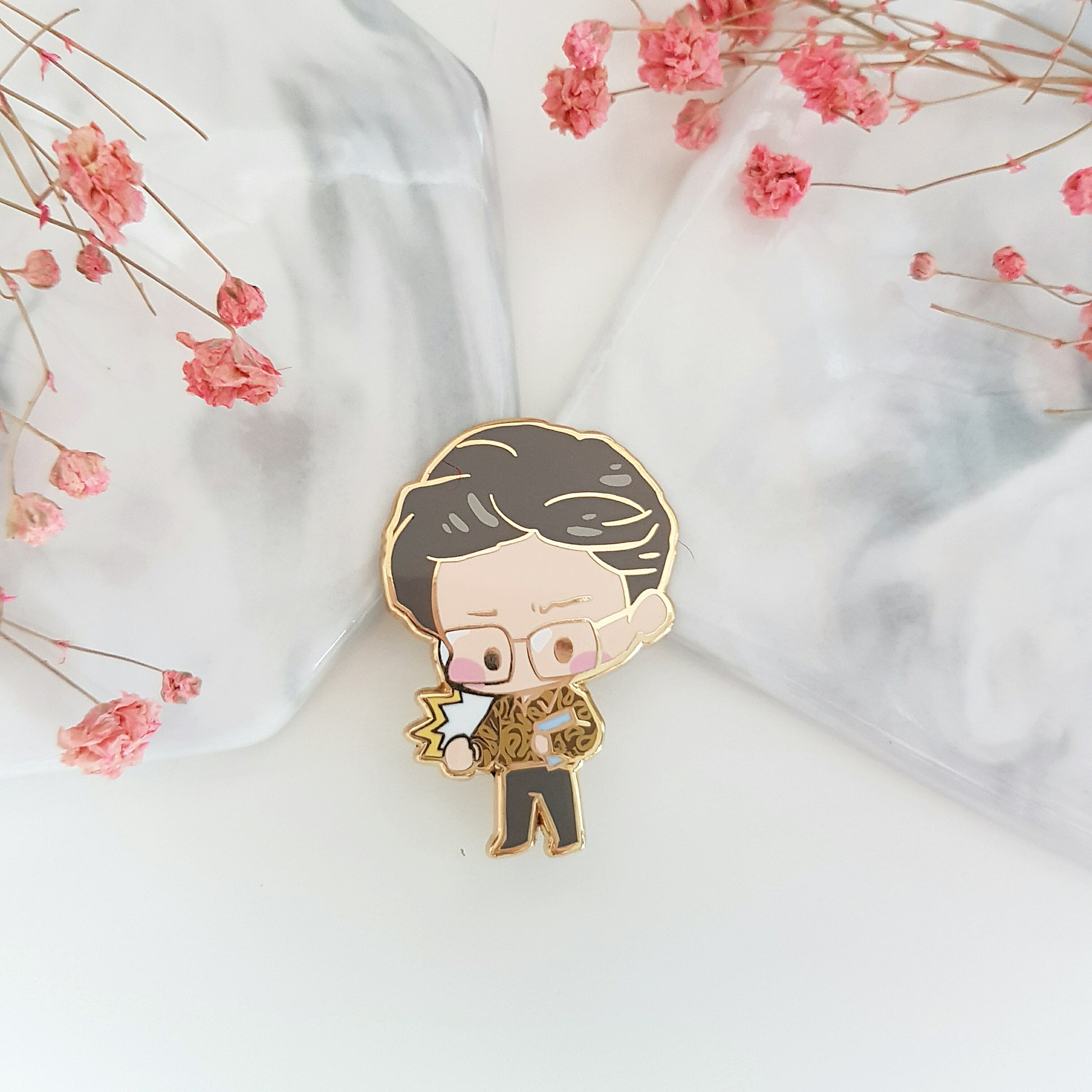 Hard enamel pin with gold finish. 40mm in height.