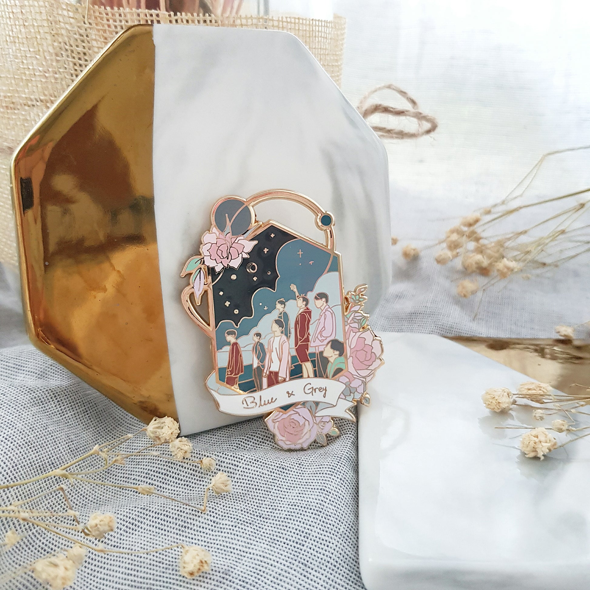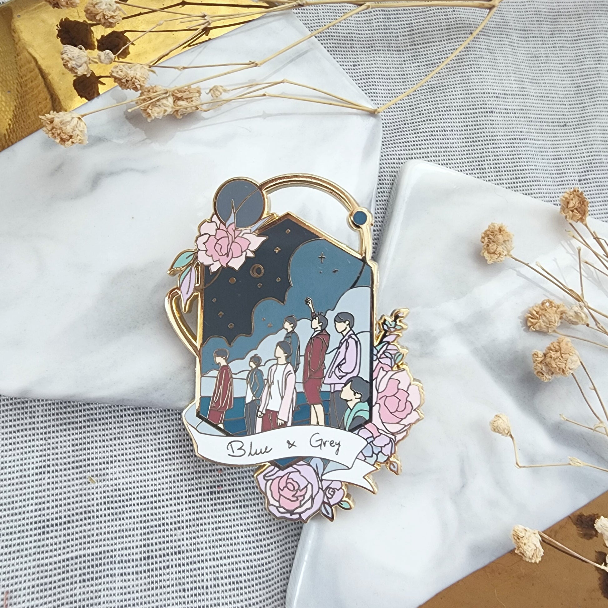 Hard enamel pin with gold finish. About 5.7cm in height.