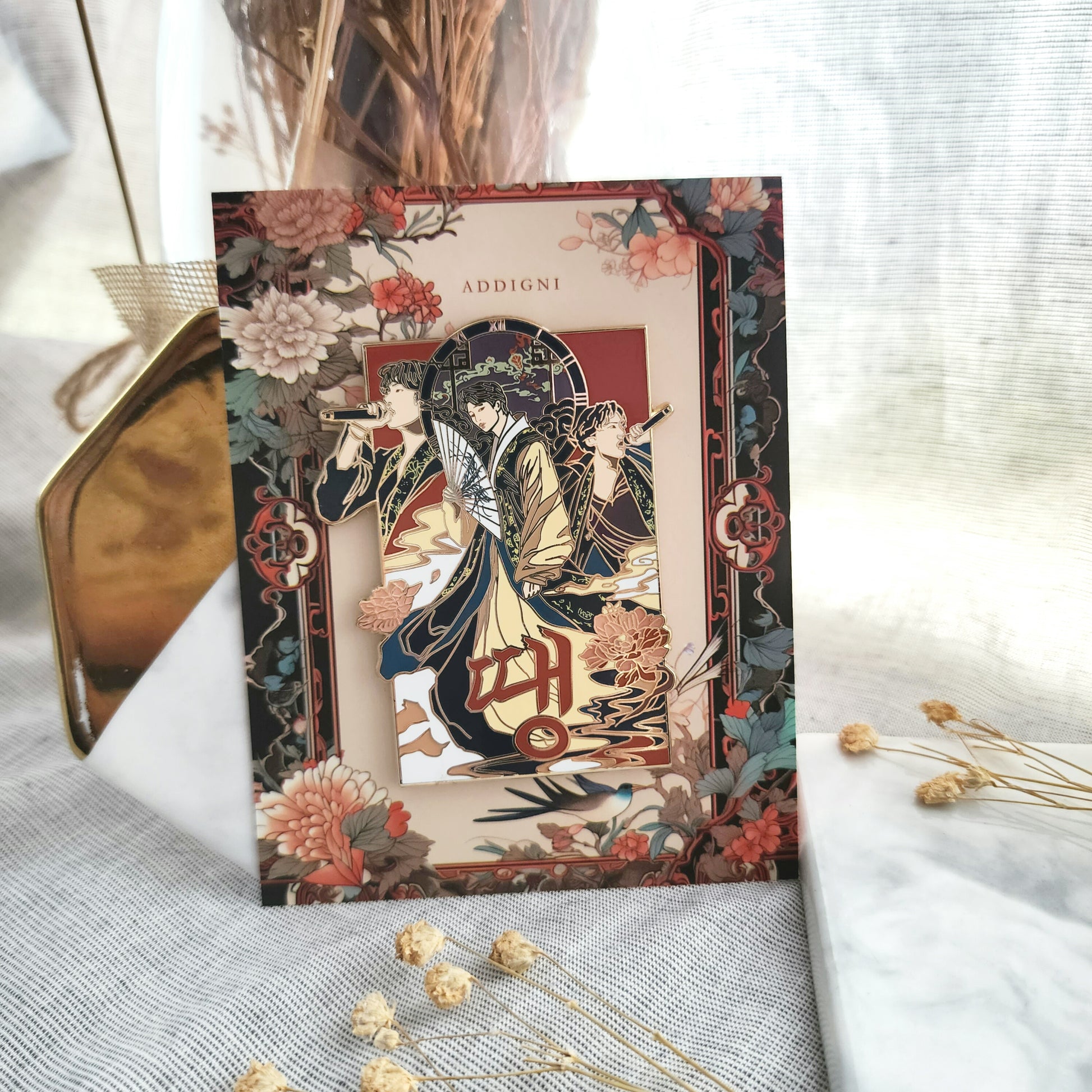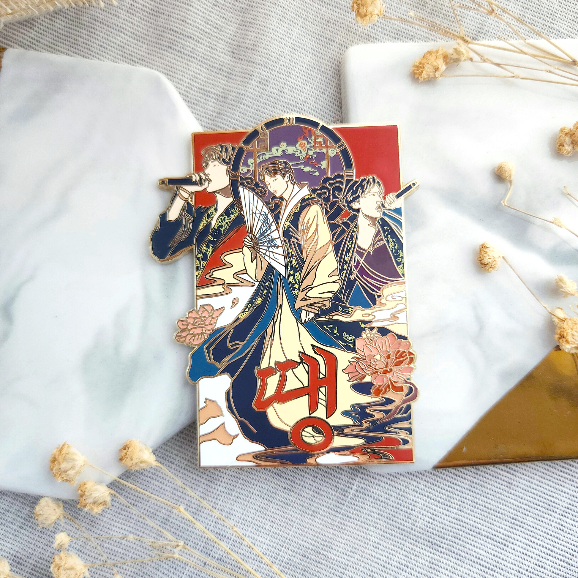Hard enamel pin with gold finish. About 70mm in height. Instock