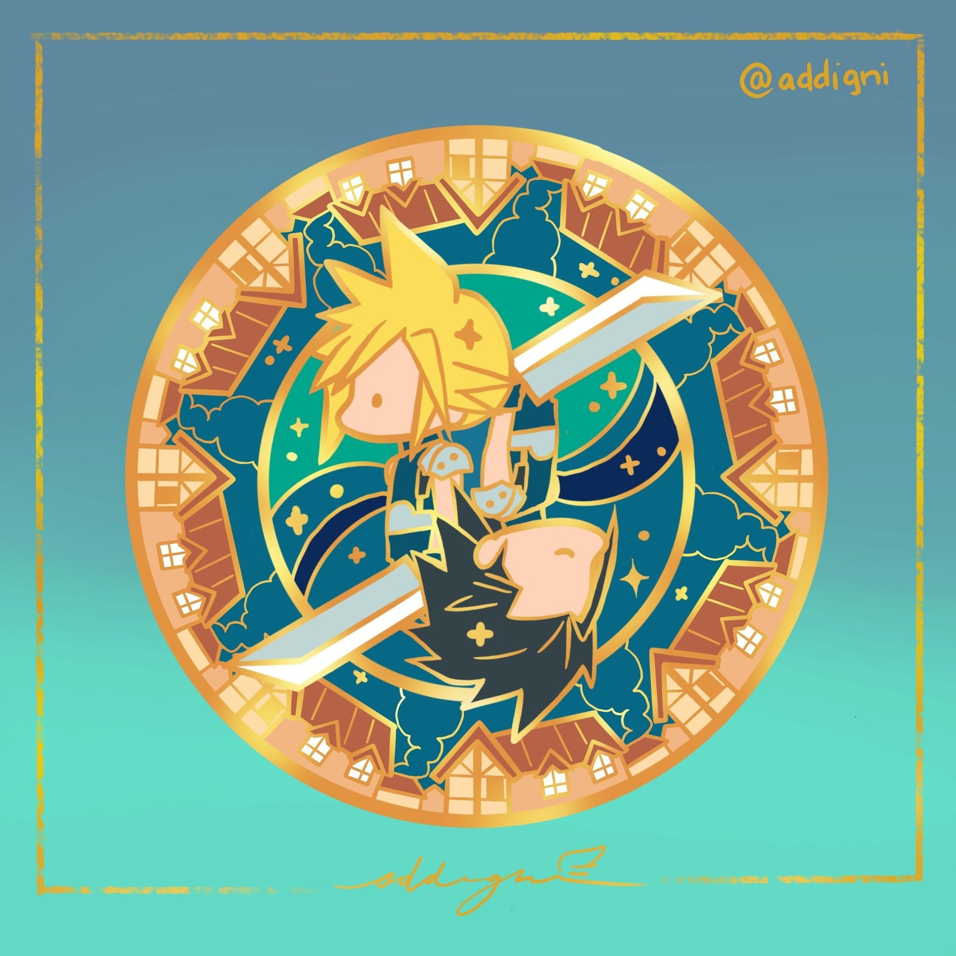 Spinning metal pin inspired by Final Fantasy VII. About 4.5cm in size.
