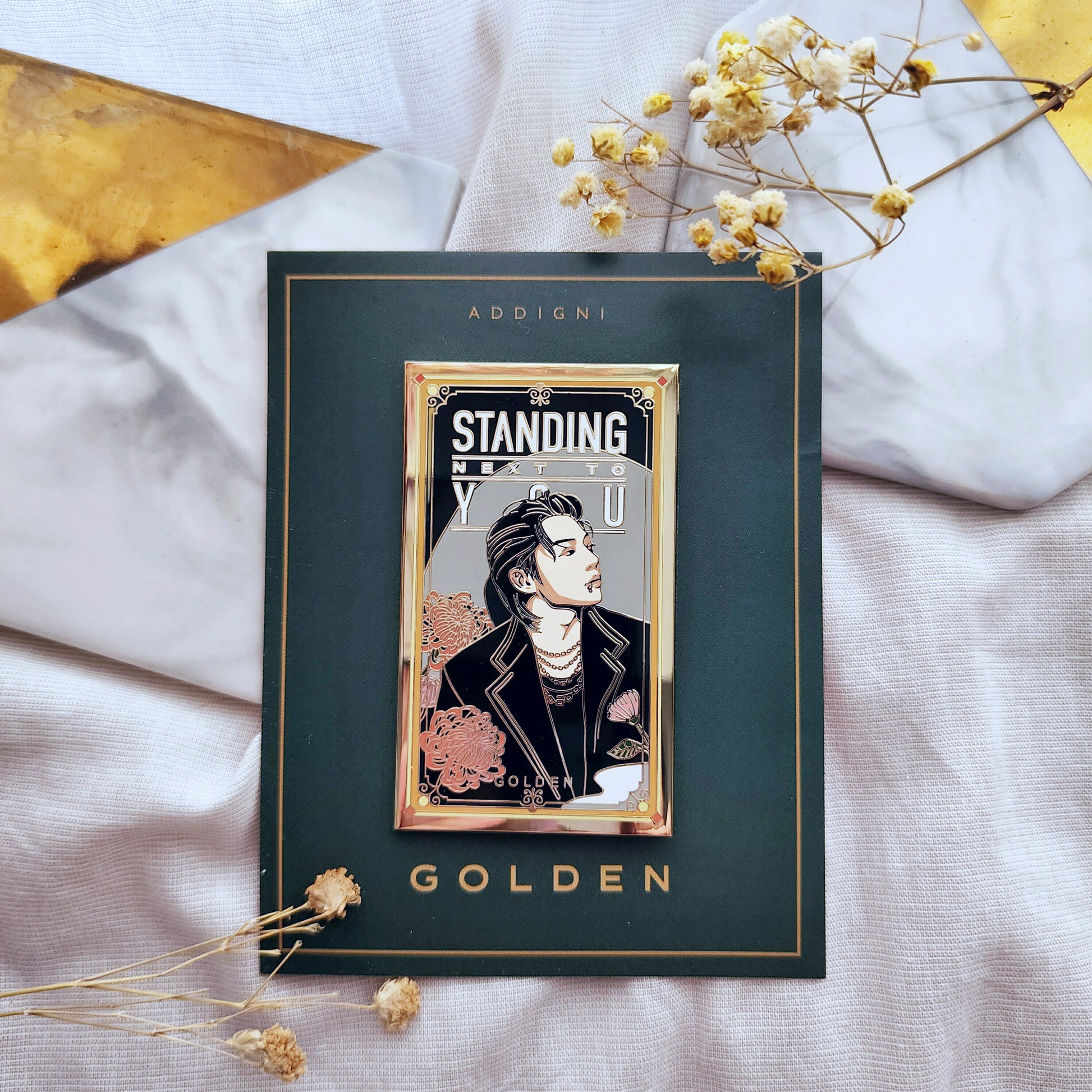 Hard enamel pin with gold finish. About 70mm in height