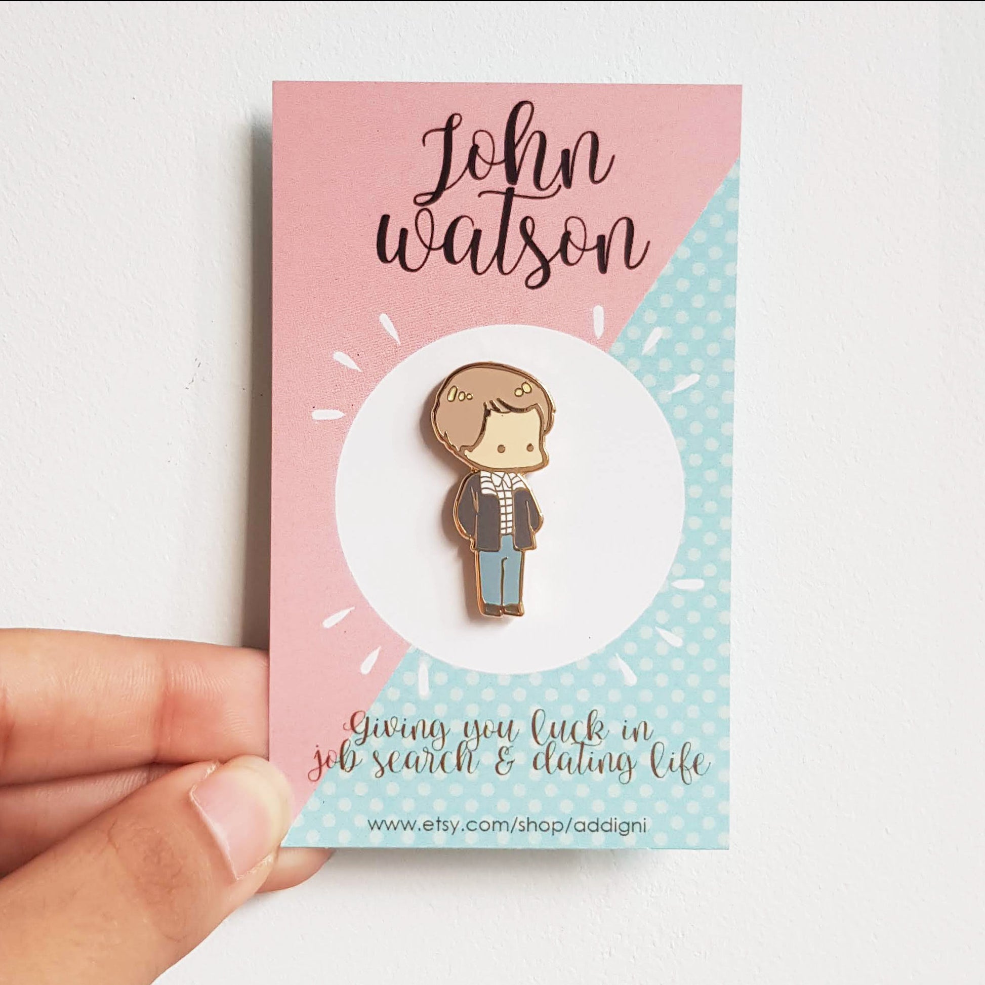 Hard enamel pin with shiny gold coating Chibi John is 30mm in height. Only pin is available.