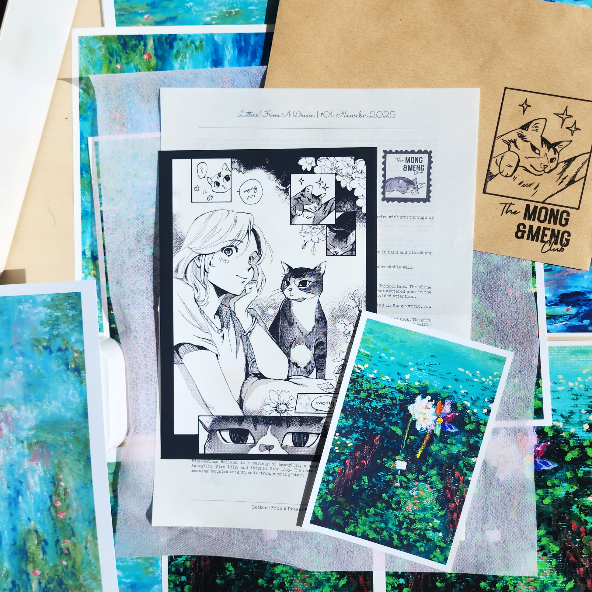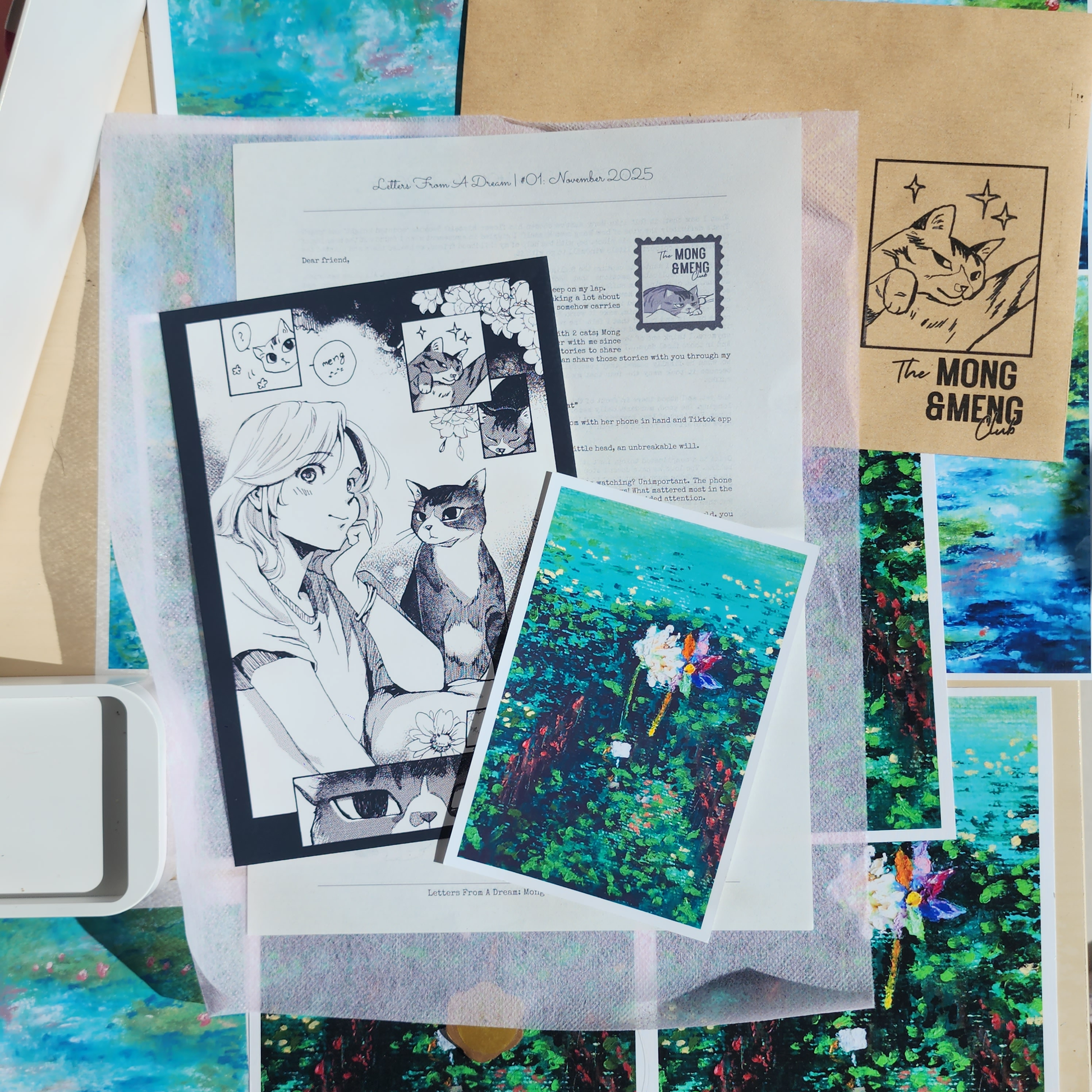 Each month’s mail is a little window into the life of Mong and Meng, my cats who have been with me for 15 years. Mong passed away in January 2025. This mail club is a celebration of not only the life I shared with Mong and Meng, but also a journey of what it means for us to continue to love, even when those we love have passed on.
