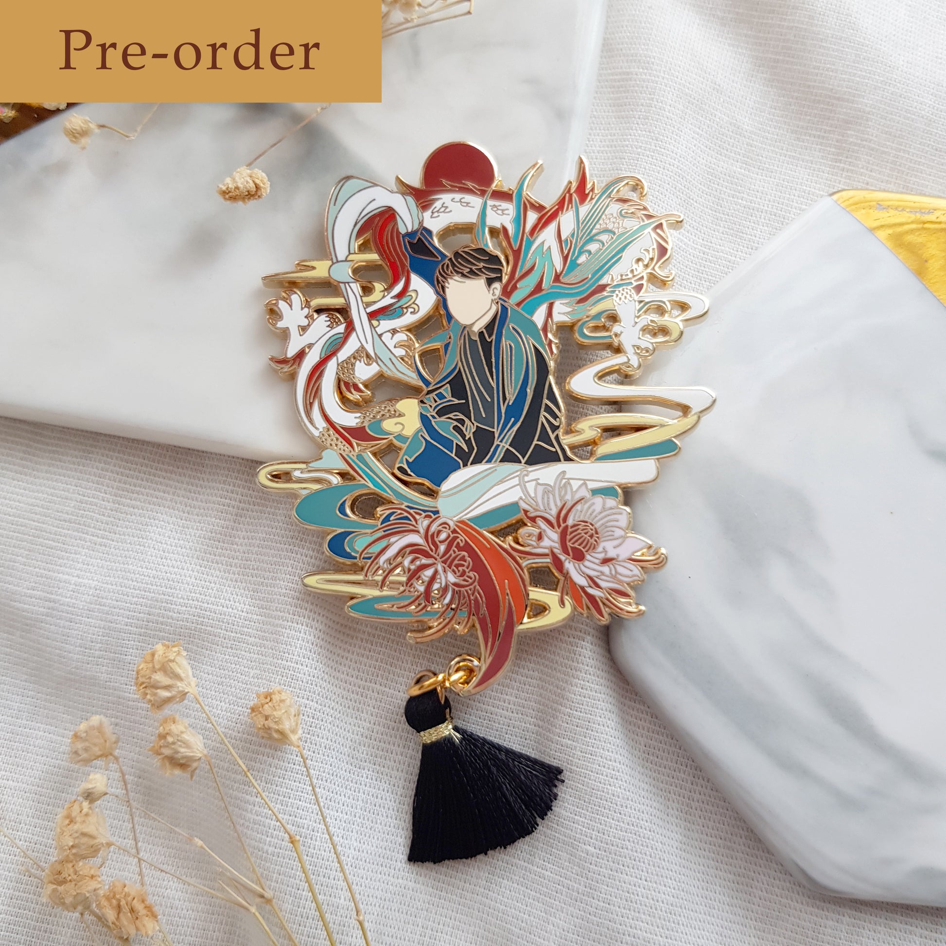 Hard enamel pin with gold finish.