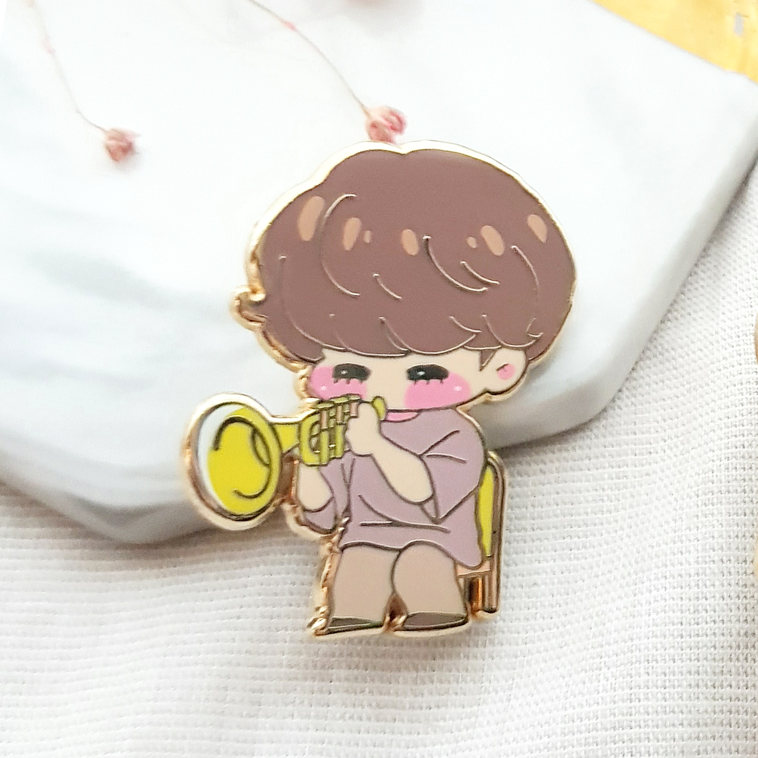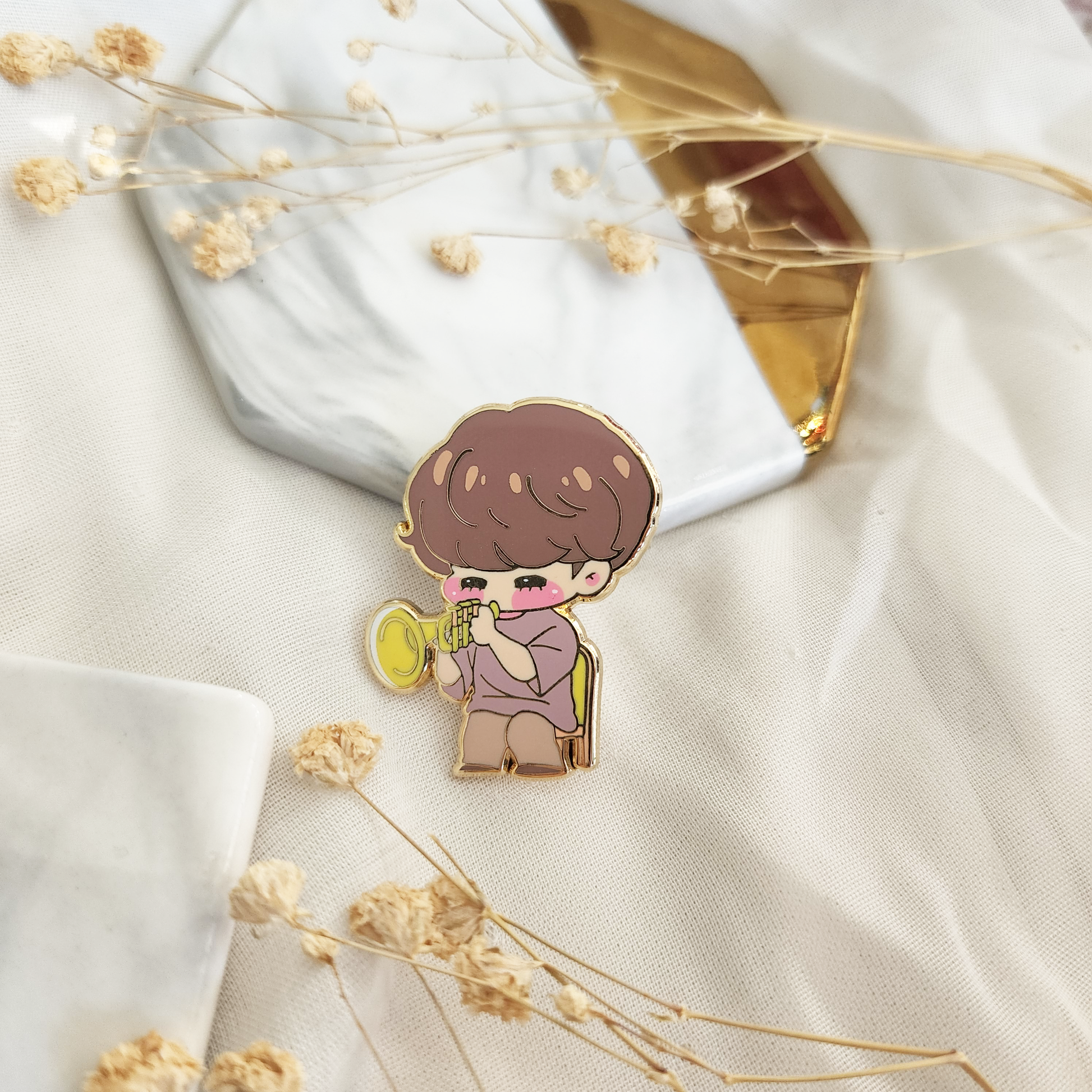 Hard enamel pin with gold finish. About 3.5cm in height.