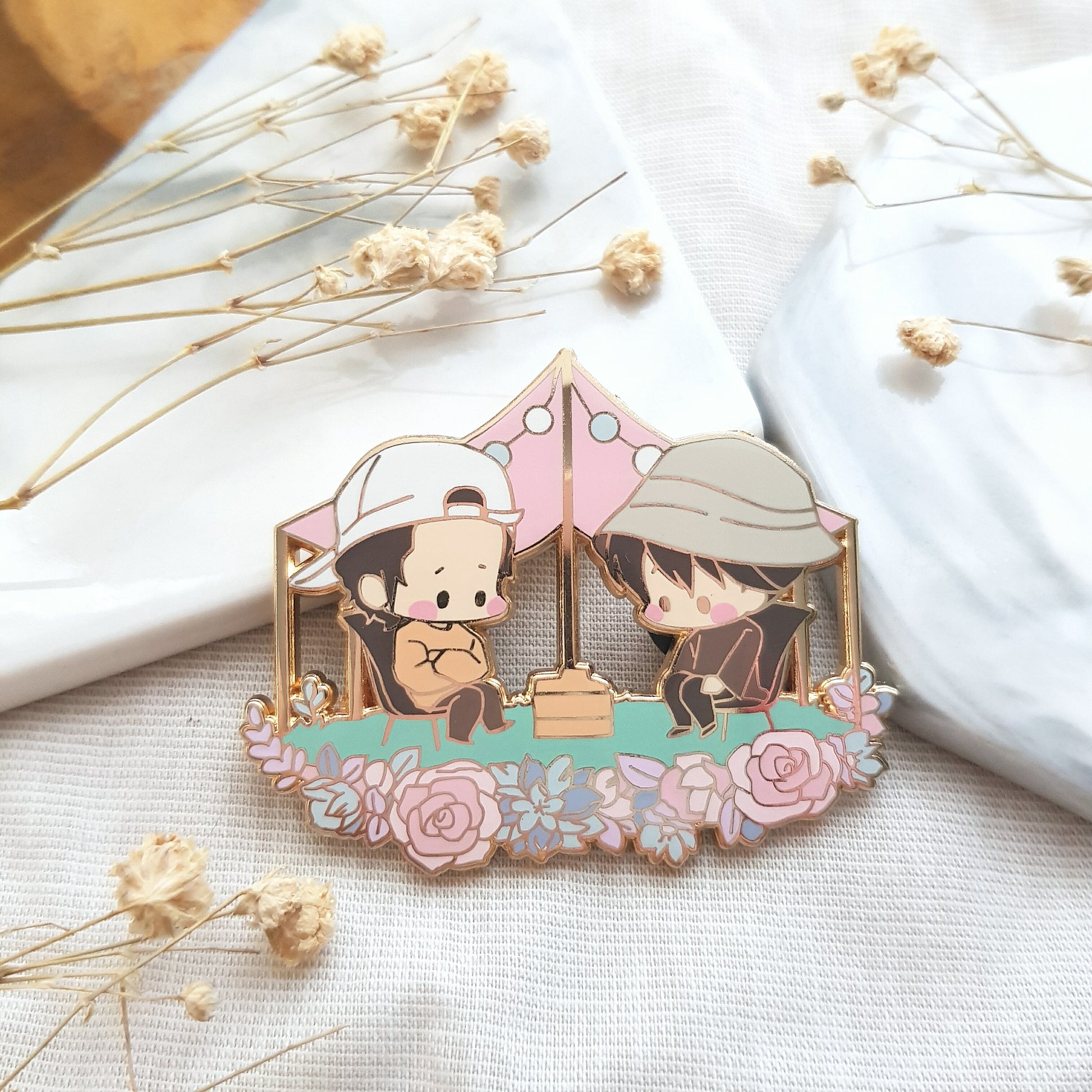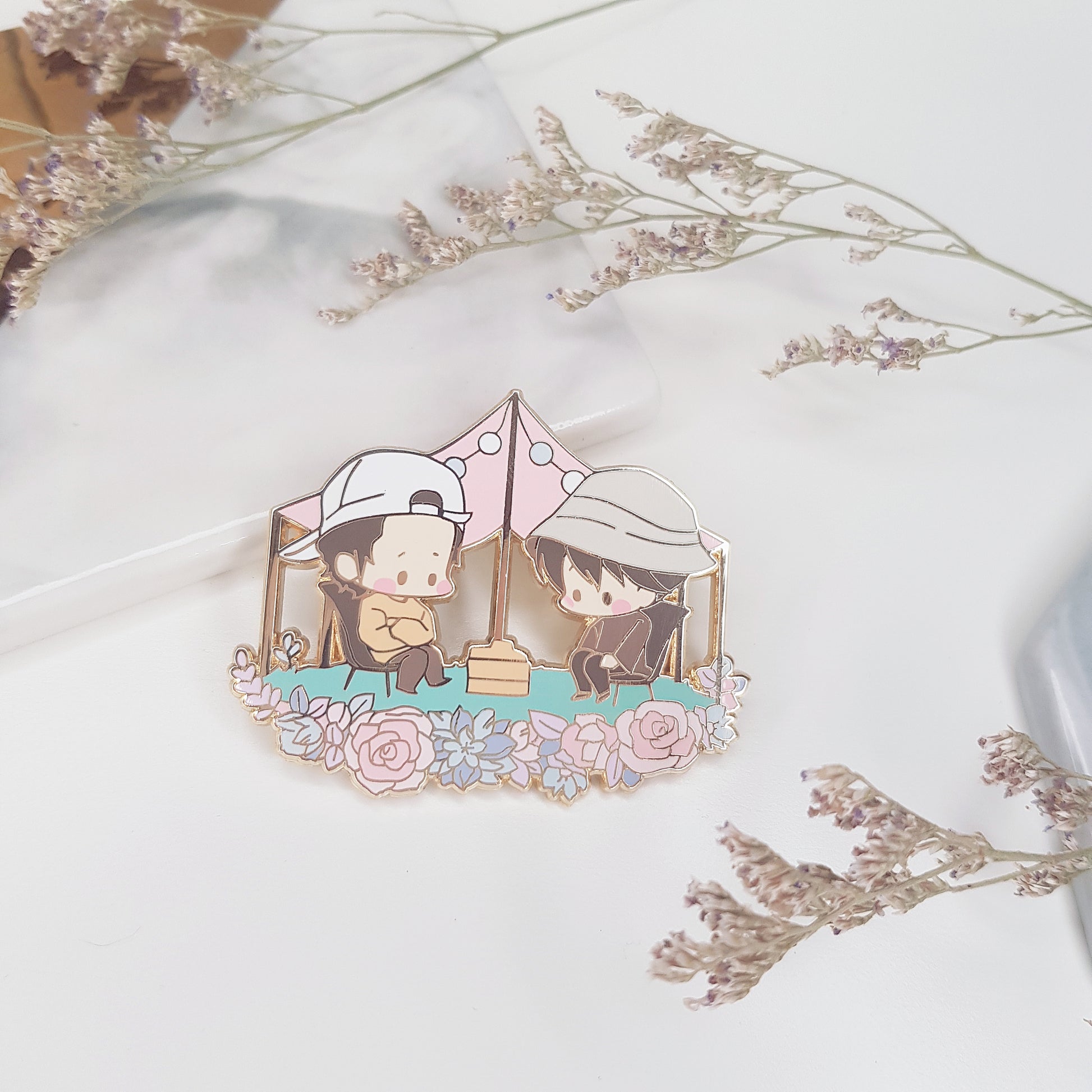 Hard enamel pin with gold finish. About 4.5cm in height.